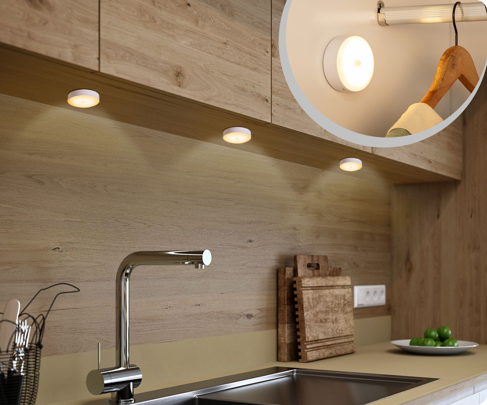 Ze zijn eenvoudig te installeren zonder bekabeling of boren, schakelen automatisch in wanneer je beweegt en worden opgeladen via USB-C – geen batterijen, geen gedoe!